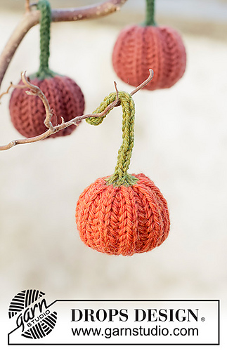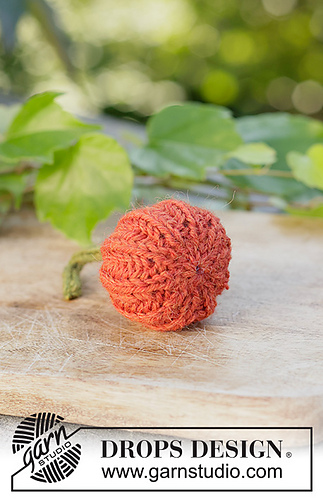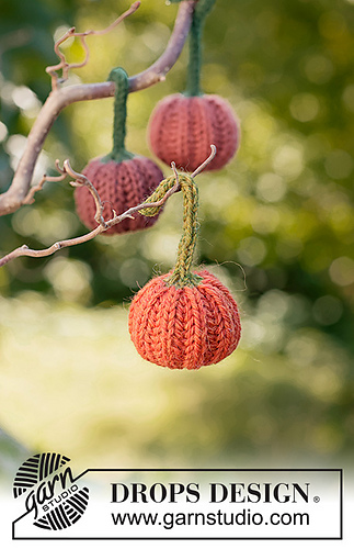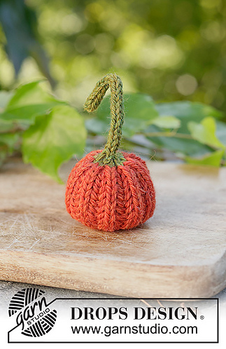 Knitted hangable pumpkin decoration in DROPS Lima. The piece is worked in English rib with I-cord. Theme: Halloween.