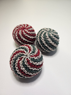 Knitted Christmas bauble in DROPS Cotton Merino. The piece is worked back and forth in garter stitch and stripes/spiral. Theme: Christmas.