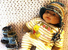 This crochet pattern has instructions for 0-6 month and 6-12month booties and infant to adult hat sizes