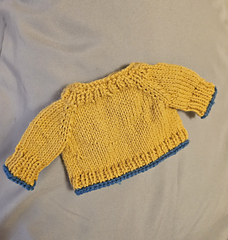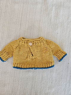 She will be the best dressed baby doll in town! This little cardigan requires 20g of 4ply yarn and one tiny button.
