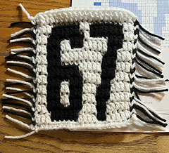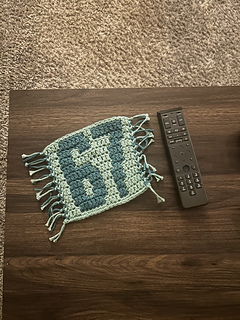 This pattern is written for 2 colors of yarn, any tapestry crochet (color changes) would be done manually and are not included in the pattern. This project can be made in any weight yarn, but I recommend worsted weight cotton (4) to ensure the size. The pattern is 22 stitches across by 20 rows tall. If made with worsted weight yarn, the finished project should measure about 6” wide x 6” tall, not counting the fringe or border.