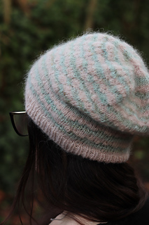 Tour de tête du bonnet terminé, lavé et bloqué :