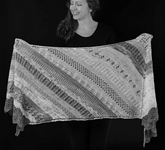 This wrap is knit seamlessly from the top down and then from the center out. Using a combination of garter stitch, lace, and textured stitches, your needles will never get bored! This wrap has a fun construction that was specifically designed to optimize the yardage in your mini skeins as the wrap grows.