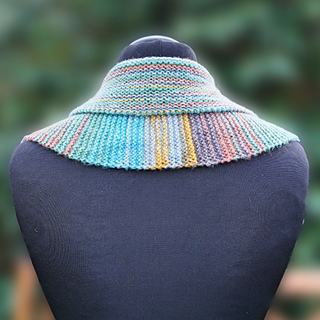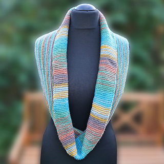 The Anmore Loop combines straight lines, garter stitch and the random scatter of colours in a variegated yarn in a surprising way.