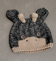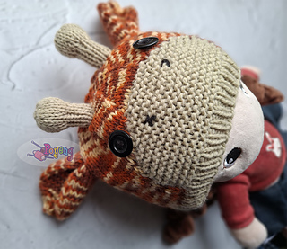 The samples knitted in SA Poyeng yarn in 2 different solid colors, and leftover dark color yarn for the nose detail, but feel free to use any DK yarn that suits for 3.5 - 4.5 mm knitting needle.