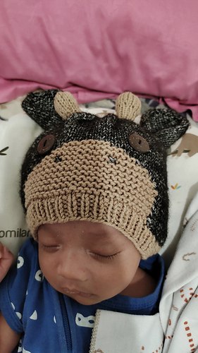 A fast and fun project! This is my take on baby giraffe hat. Actually, this is the revised version of I made in 2016. This 2025 version used intarsia in round because I really prefer to avoid inconvenient seaming. And I find that ribbed brim is still the best for starting every knitting project.