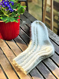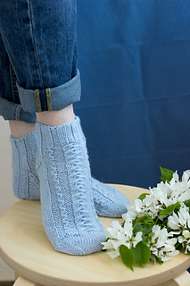 The central cable make these socks nice and unusual. The were designed for 6-ply sock yarn to make socks thicker and warmer then standart socks.