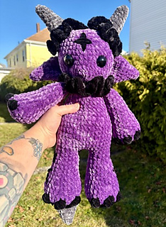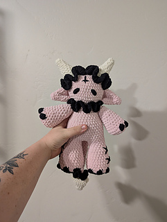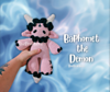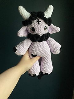 Meet Baphomet the Demon, a pastel-spooky cutie designed to stand on their own and bring a little soft chaos to your collection! This pattern features a charming mix of pastel pink, black accents, and small white details for the horns and highlights.
