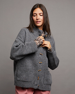 • COMO Tweed 275 (300/325/350/375/400) g in Slate Grey 28T and COMO 275 g in Slate Grey 28M, 8 (8/8/8/8/9) toggle buttons (3 cm / 1.2“ long), 2 stitch markers, 1 tapestry needle