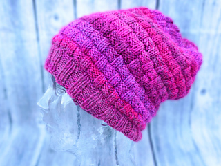 This hat is the basketweave pattern with the fashionable beanie hat shape. To prevent getting bored with the look of our hat you can wear it with either side showing as it is a textured reversible pattern.