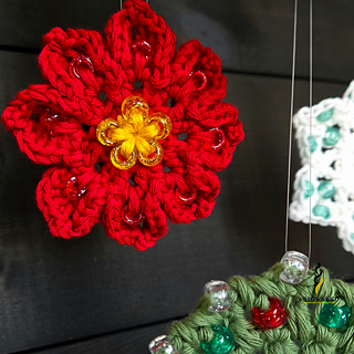Beaded Poinsettia Christmas Ornament crochet pattern, written in US terms