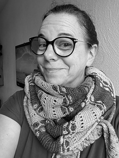 The pattern Kleinod was developed especially for the Locoporella Advent Calendar 2025 „Bend & Dots“ in Blue, Soft or Dark. The shawl can also be knitted from 3 or more colors.