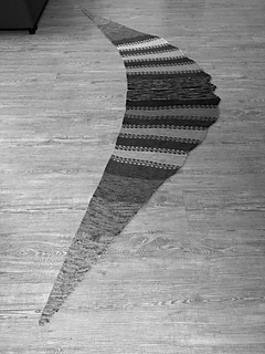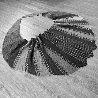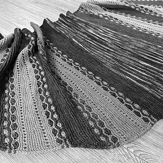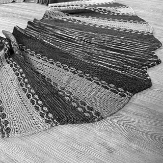 A light and dreamy shawl, curving gently with a trail of tiny floral echoes in dot form.
