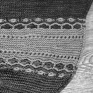 25 sts and 56 R = 10 x 10 cm (4“ x 4“) measured over diamond pattern.