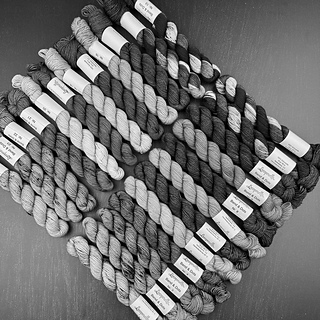 24 Farben in Fingering/Sockengarn-Stärke mit einer Lauflänge von 80 m (87 yds)/20 g.