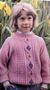 Size 5 16” circular needle is needed along with size 4 and 7 needles and a cable needle. There are 6 different stitch patterns used in this child’s pullover, instructions are written out only (no charts). Optional flowers can be embroidered in the cabled diamonds.