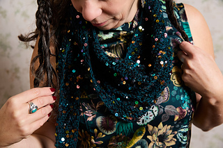 Blingola Scarf is knit with two fabulous yarns — Lola’s Blingola and Pascuali Puno. The fabric these two yarns make together is perfection. They are knit together at a loose gauge, allowing the fabric to drape and the sequins to easily pop to the front of your work. Knitting with bling has never been so easy!