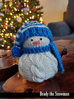 Meet Brady. He’s a knitted snowman ornament. He looks adorable hanging from a Christmas tree, or even sitting on a shelf. He would also make an awesome little stuffie toy! This knitting pattern includes instructions for the entire project… the snowman, the scarf, and the long hat. These are easy to make and barely use any yarn. Very inexpensive to make. Brady will be a cherished part of your holiday decor for generations to come, and he won’t break like other ornaments!