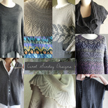 Any Sunday Knits 5 ply (worsted weight - 135 yd per 50 g skein) in Angelic (merino angora), Nirvana (merino cashmere), Eden (merino) or Brigadoon (merino tweed): 11 (12, 13, 15, 16, 17) skeins. Shown in Angelic smoke.