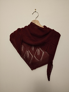 Relaxing garter stitch and a fun ribbed leaf border make this shawl a must for fall knitting. The asymmetrical triangle is worked sideways from the left tip and has patterning on right and wrong side rows. Work the leaf design from either charts or the full written instructions. Suitable for yarn weights up to aran; be sure to adjust your yarn requirements when making substitutions.
