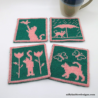 This pattern contains the cat designs for the spring scenes in Cats For All Seasons Scarf redesigned for a coaster size and shape.