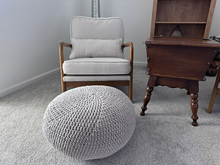 Designed with thick yarn for durability, this pouf holds its shape while remaining soft and comfortable for everyday use.