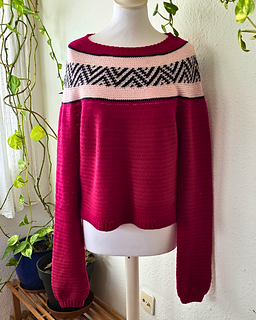 Si tejes el Cholita Sweater, comparte tus fotos con los hashtags: