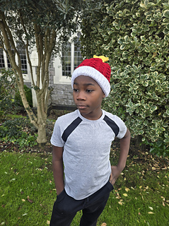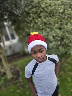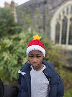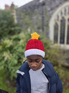 A festive and beginner friendly crochet hat pattern designed in four sizes: Toddler, Child, Teen, and Adult. The Star Top Christmas Hat features a textured red body, soft white brim, and a bold crocheted star attached to the top.