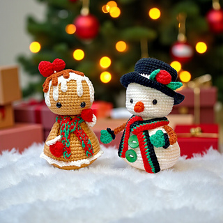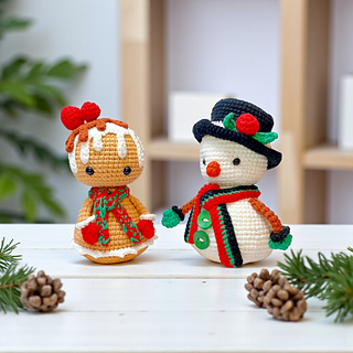 Stitch a cozy Christmas scene with this two-in-one holiday amigurumi set! The cheerful Snowman and the sweet Gingerbread Girl are perfect as tree ornaments or as cuddly home décor for mantels, shelves, and gift sets. Designed for a smooth, enjoyable make with clear round-by-round instructions and build-as-you-go accessories, these festive friends bring instant holiday charm to your space.