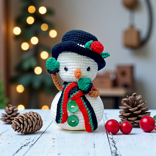- Tools/Notions: yarn needle, scissors, stitch markers, pins; optional buttons for the Snowman’s belly
