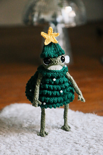 It is worked flat with 3mm (2.5 US) needles and fingering weight yarn. The star is crocheted and you’ll need a 2mm crochet hook.