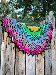 This stunning half-circle shawl is a true stash-busting superstar – perfect for digging into your fingering weight leftovers and turning them into something spectacular. Mix bold contrasts like golden yellow and deep black, or go wild with multicolored scraps for a one-of-a-kind masterpiece. Customize it: adjust the size (full dramatic 2-meter wingspan or a cozier version with fewer stripes), play with colors, and watch your stash transform into wearable art.