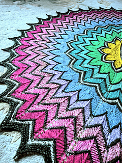 The pattern features rhythmic garter sections mixed with engaging increases and decreases that keep every row interesting without being overwhelming.