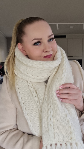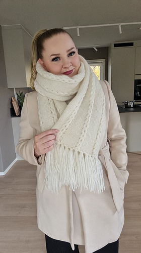 Chunky Fiola Scarf er et mykt, voluminøst og tidløst skjerf som kombinerer klassisk struktur med moderne enkelhet. De brede flettene gir et eksklusivt uttrykk, mens garnet gjør skjerfet lett og luftig, perfekt til kalde vinterdager.