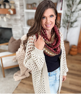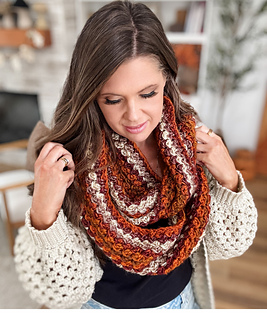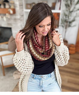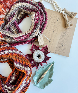 The Chunky Suzette Infinity Scarf is the perfect blend of style and comfort, designed to keep you warm and on trend. This modern infinity scarf is worked with beautiful variegated yarn, held double for a quick, bulky make that feels soft, cozy, and luxurious.
