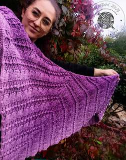 Wzór na szydełkową, trójkątną chustę. Plik pdf w języku polskim w formie schematu graficznego przeznaczony dla osób średniozaawansowanych.