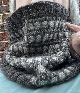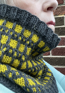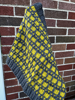 2skeins of worsted weight yarn approximately 236yds each in contrasting colors. Grey and Gold Sample knit in The Fibre Co Cumbria in colors Hadrian’s Wall and Buttermere
