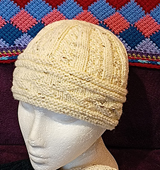 Creamy Guernsey Hat covers the ears comfortably, but it is not a slouchy hat.