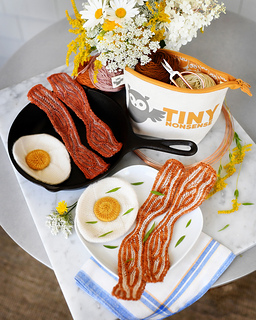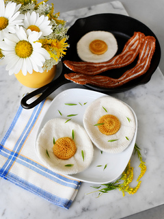 I have, as is so often the case, absolutely no excuse for this nonsense. There is literally no problem on this earth that is best solved with a knitted fried egg. The world was not crying out from the depths of its soul for brioche bacon.