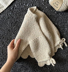 Crossandra Sweater is knitted top down, starting with the back yoke which is worked back and forth (while shaping with short rows). After that sts are picked up across the shoulders to form the front yoke, then the rest of the body is worked in the round till it’s finished. Sts for sleeves are then picked up, and worked in the round.