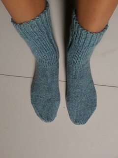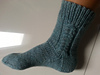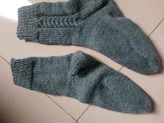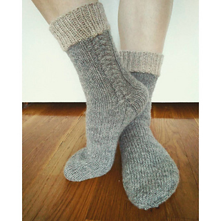 Simple worsted weight sock with a ribbed cuff and a small stacked cable on the instep (which can be worn on the outside if you want).