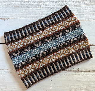 The Darrington Cowl is a Fair Isle style accessory knitted in the round. Start with a corrugated ribbing, then follow the chart to create this colorful neck warmer.