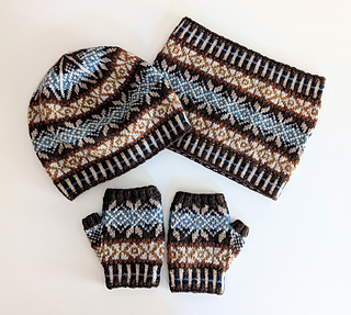 The Darrington Cowl is a part of the Darrington Set that includes a hat and fingerless mitts. When you buy this pattern you get all three accessories as a bundle.