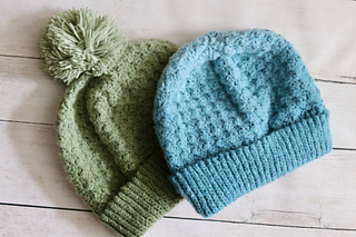 Yarn: Caron Cloud Cakes Perfect Phasing ® by Yarnspirations ® (100% Polyester; 227 g/8 oz; Approx. 720 yds/658 meters). Medium (4). Colour Shown: Fir. You will need 1/2 cakes to complete the hat.