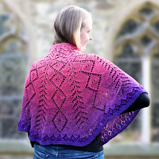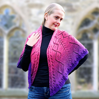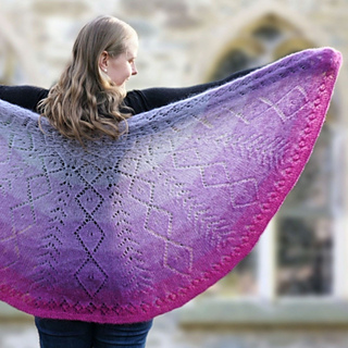 The Diamonds & Arrows shawl is knit with super soft mohair-silk-blend or a gradient yarn cake, but can also be knit with any other yarn.