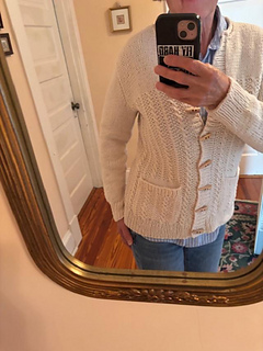 This is not a boring knit. About the time I was tired with one stitch, it switched to another. I think you will enjoy both the knit and wearing it. I hope so!