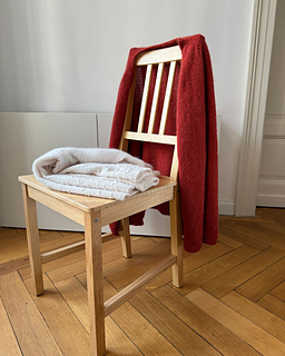 Die weiße Jacke ist in den Farben “Cream” gestrickt, die rote Jacke in den Farben “Pomegranate”.