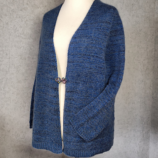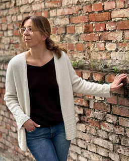 The cardigan is worked with Knitting for Olive “Merino” and “Soft Silk Mohair” held together.