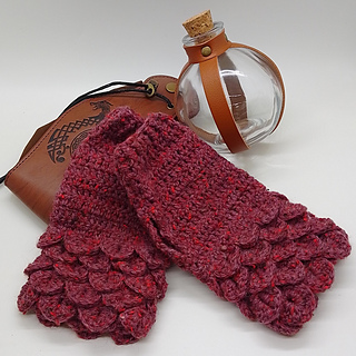 Downloads include the mitt pattern and a dragon scale crochet technique sheet.