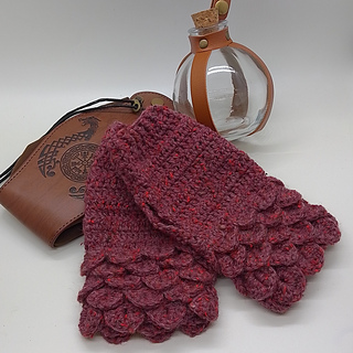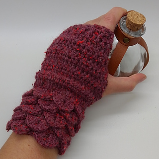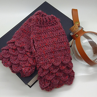 Use this pattern to practise the dragon scale stitch (also known as crocodile stitch). Starting with five rows of scales, although you could add more, a section of trebles is worked for the hand, then finished with a crochet rib. Worked flat using DK yarn, you could also use this as a scrap buster, working each row of scales in a different colour.